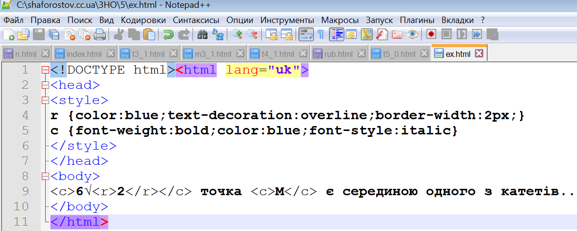 Як бачимо, створені теги описуються у блоці стилів (між тегами