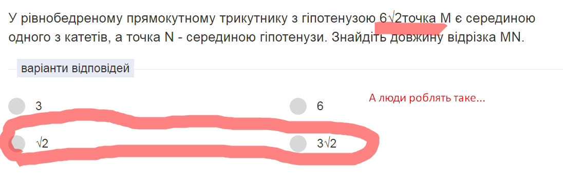 На малюнку ліворуч наведено скрін з навчального сайту і відмічено дещо невдалі рішення. А саме фрагменти з показом математичних виразів з використанням радікалу.
